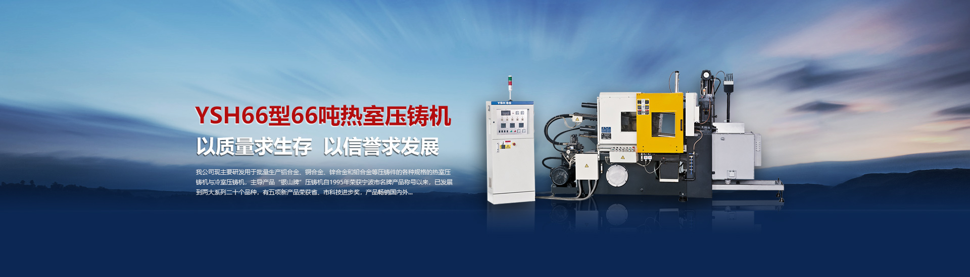 我司現(xiàn)主要研發(fā)用于批量加工生產(chǎn)鋁合金、銅合金、鋅合金和鉛合金等壓鑄件的各種型號規(guī)格的熱室/冷室壓鑄機(jī),主導(dǎo)產(chǎn)品“銀山牌”壓鑄機(jī)自1995年榮獲寧波市名牌產(chǎn)品稱號以來,已發(fā)展到兩大系列二十個品種,有五項產(chǎn)品曾榮獲省、市科技進(jìn)步獎,產(chǎn)品暢銷國內(nèi)外。歷年來向用戶提供了8000余臺設(shè)備,為中國的壓鑄工業(yè)發(fā)展作出了重要的貢獻(xiàn),企業(yè)獲得了很高的信譽(yù)度。